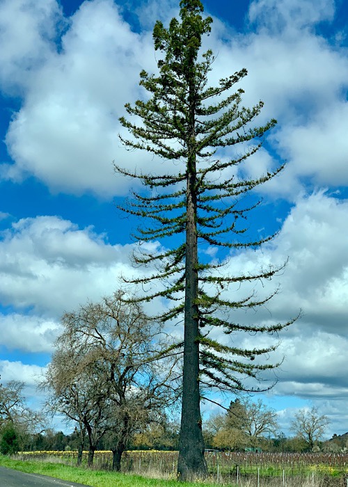 Thousands of us who pass this redwood every day have watched it recover from the fires. At first it was so charred, I thought it might not make it. But before long, it will heal completely. It will always have a blackened ring inside it as part of its history, but it will thrive for many years to come. I love it as a personal reminder of hope.